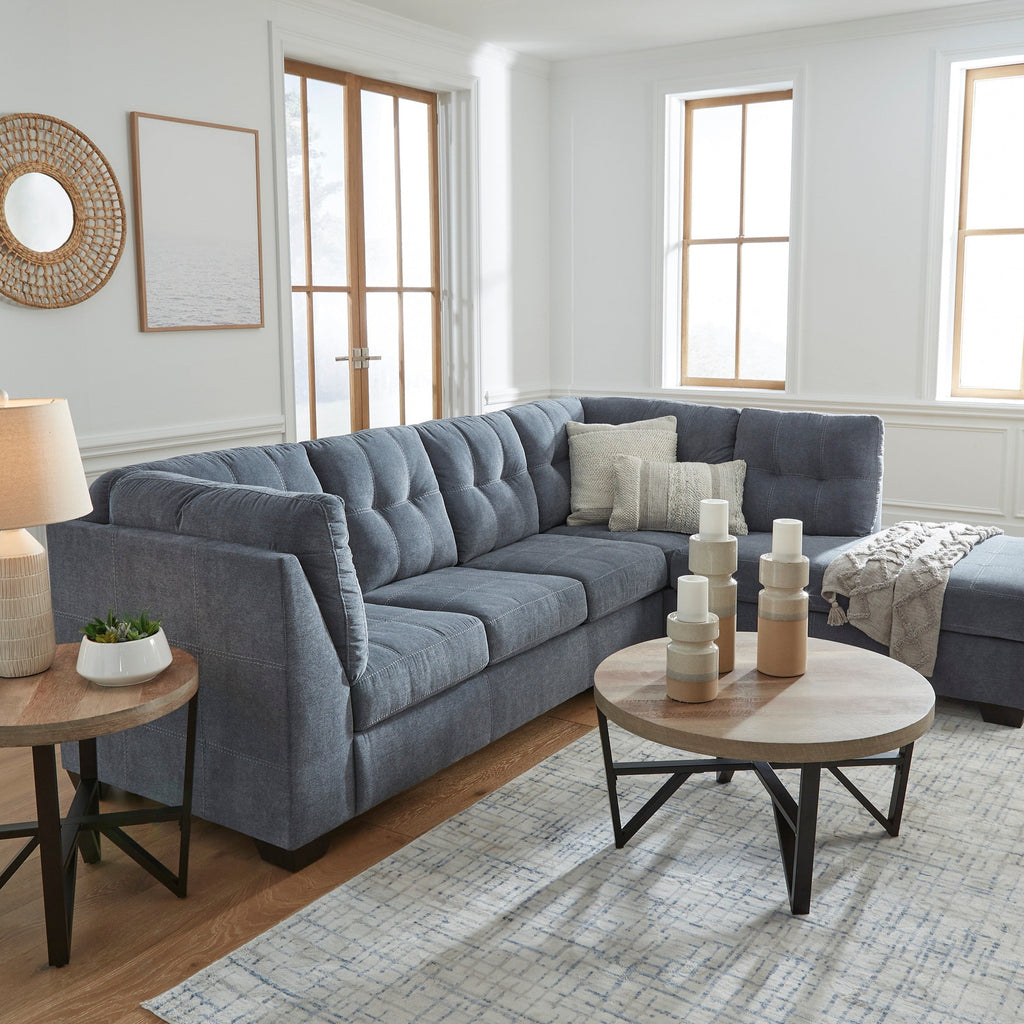 This sectional with chaise takes a homey approach to high style. Its denim-inspired fabric has classic versatility, while a contemporary silhouette and stitched details keep the look totally on trend. And you can count on comfort—the chaise invites you to kick back and stretch out.